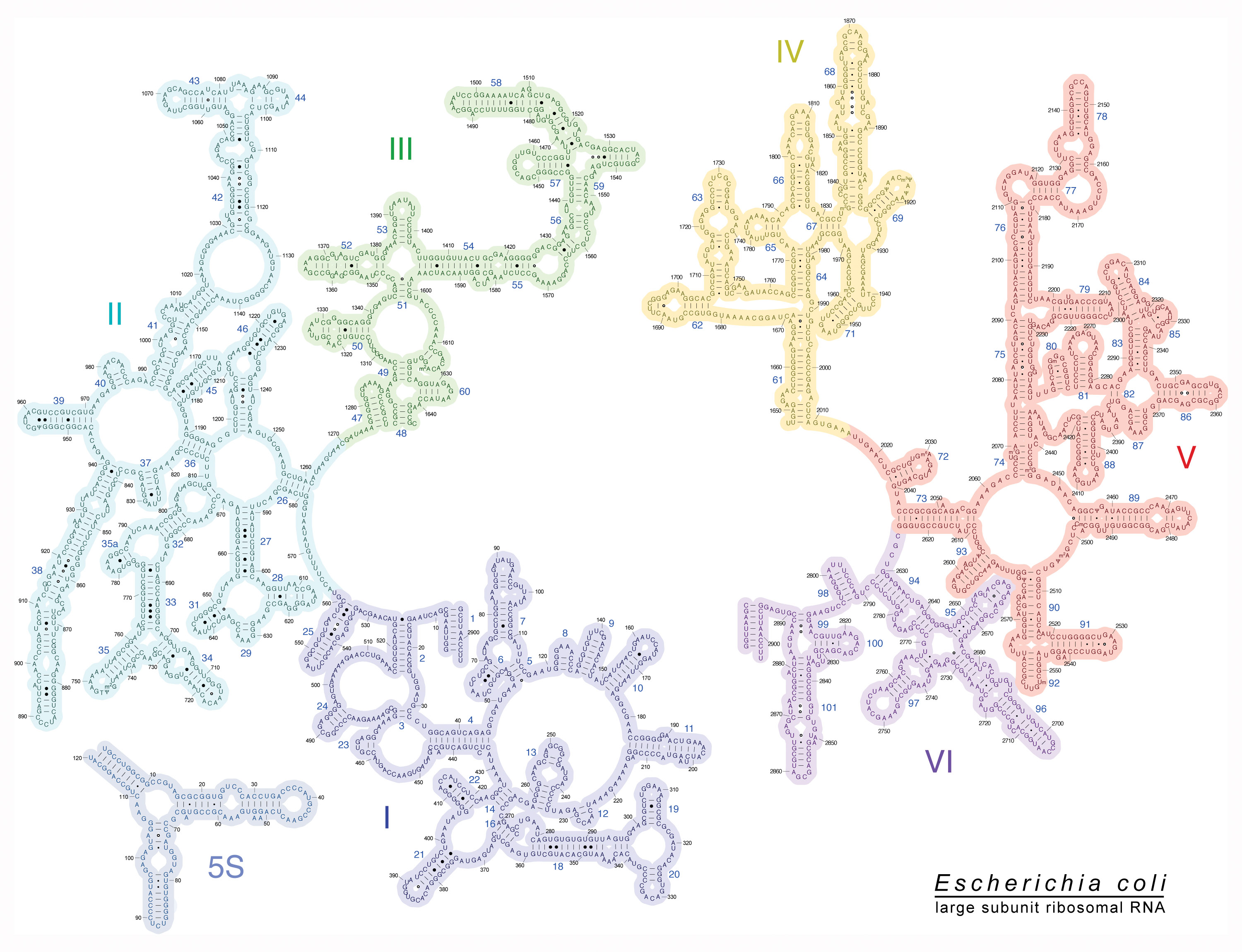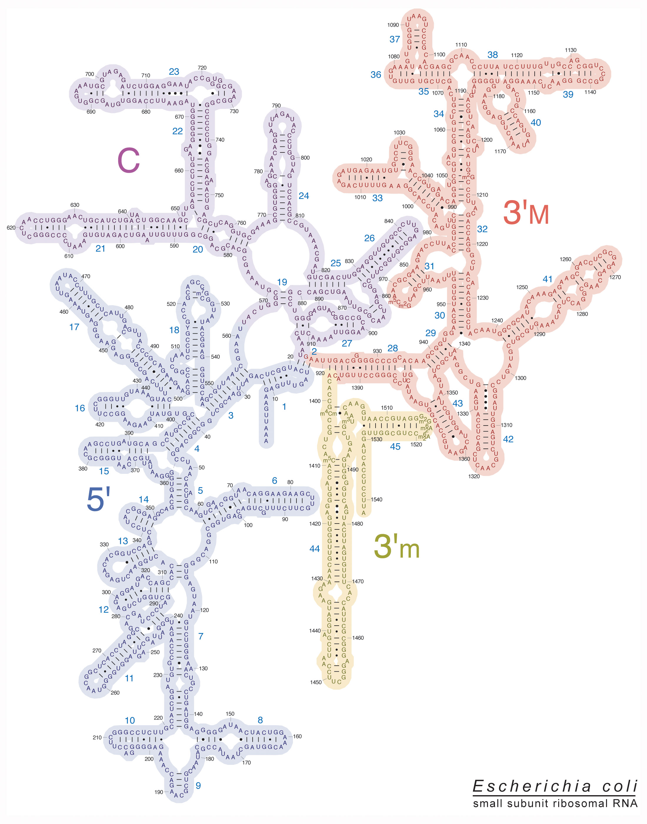 Here’s the rRNA secondary structure diagram the Noller lab produced for 16s - the rRNA for the small subunit (30s):
