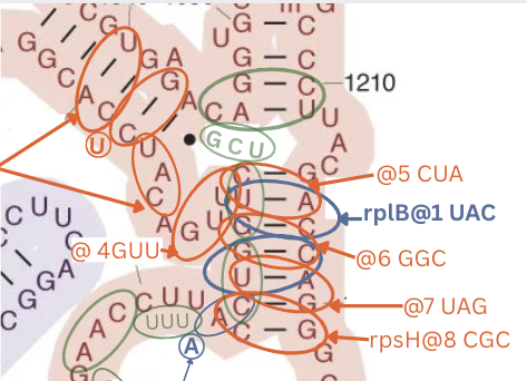 | rplD@7 | 985,986,987 | normal | stem-135 | 16s 3’M | CUG | 888 | |